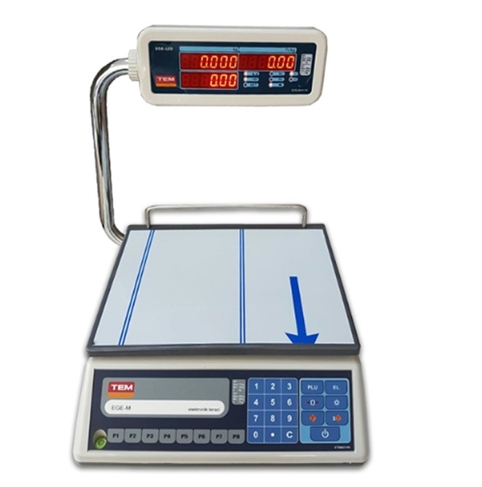 TEM TERAZİ VE BASKÜLLERİN YETKİLİ BAYİİTEM EGE LED ONAYLI Fiyat Hesaplamalı Katlanır Boyunlu Terazi 30 Kg