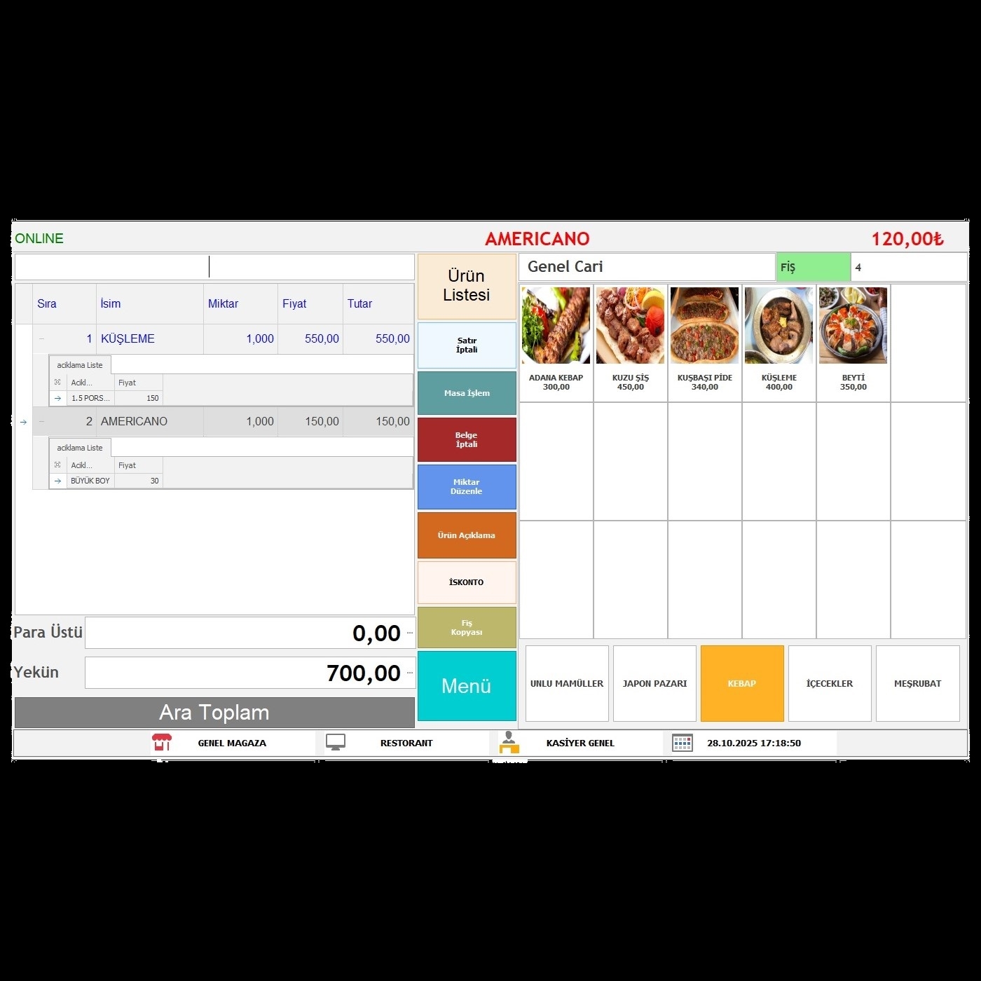 - Masa / Adisyon / Lokasyon takibi yapabilme