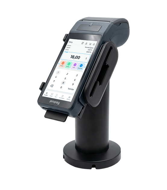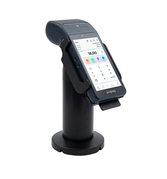 Propay P1000 ECR cihazı için özel olarak tasarlanmış bu stand, cihazın sabit ve güvenli bir şekilde konumlandırılmasını sağlar.